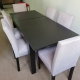 - Mesa de comedor con base central, diseñada en M.D.F y melamina semi marmol, con proceso triplelaca.