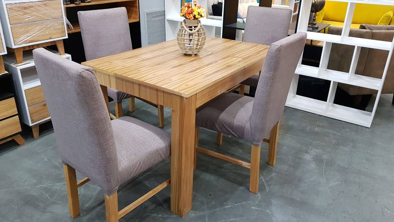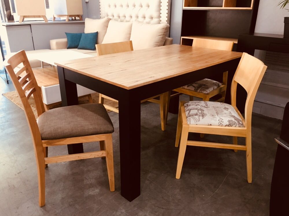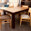 - Mesa de comedor enchapada paraiso, lustrado natural.
